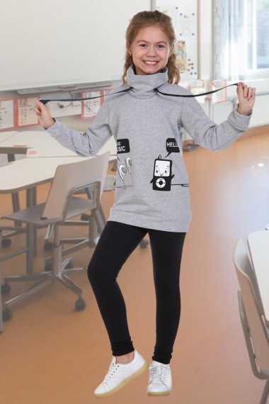 Фото товара 22648, серая удлиненная толстовка для девочки